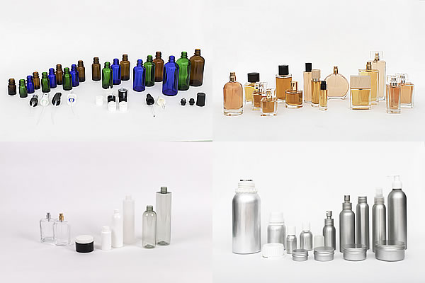 – White glass bottles – Amber glass bottles – Blue glass bottles – Green glass bottles or dropper bottles (for essential oils)